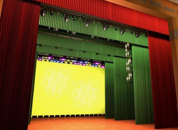 橫側(cè)幕的數(shù)量依據(jù)舞臺(tái)的深度確定,通常在表演歌舞劇的劇場(chǎng)橫條為3-5道,豎條為6-10道,離臺(tái)口近的橫側(cè)幕遮擋前面觀眾的視線,離臺(tái)口遠(yuǎn)的橫側(cè)幕遮擋后面觀眾的視線。豎條寬2.5-3米,高為臺(tái)口高度+0.5米。
